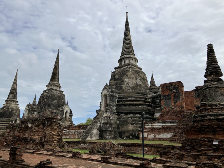 アユタヤの象徴とも言える3基並んだ仏塔にはそれぞれ3人の王の遺骨が収められているそう,